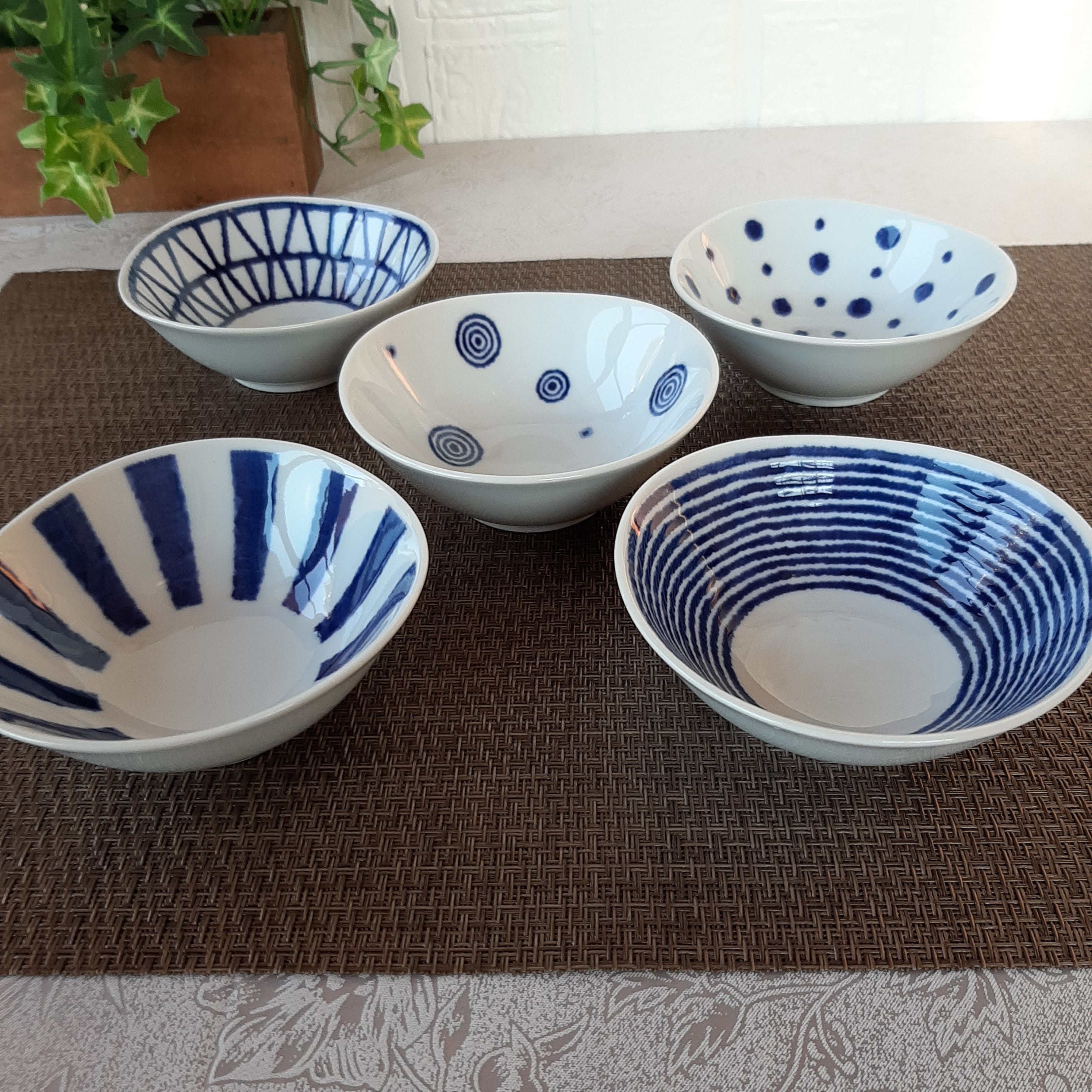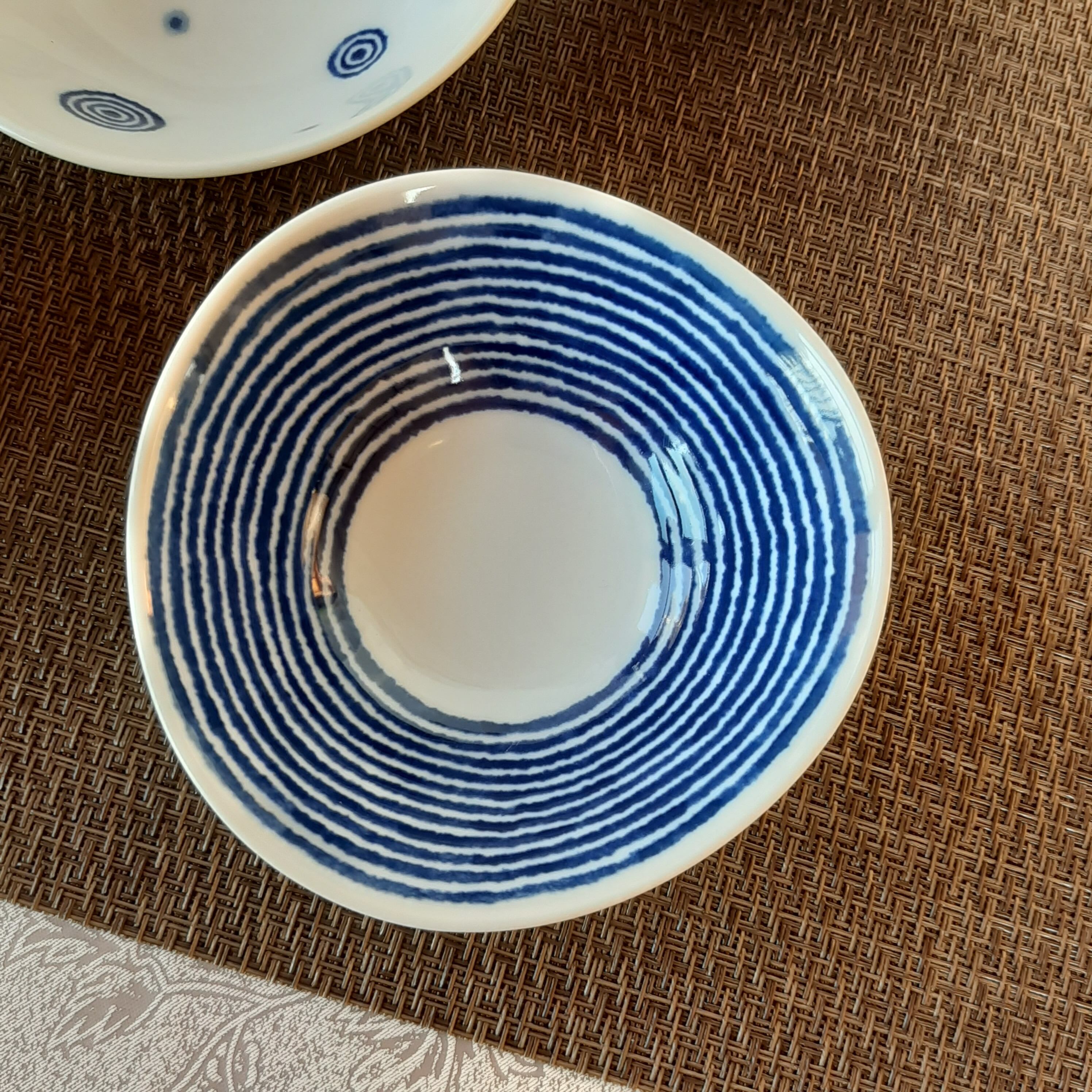 白 と 藍色 のコントラストが 綺麗 な 変形 小鉢 です。