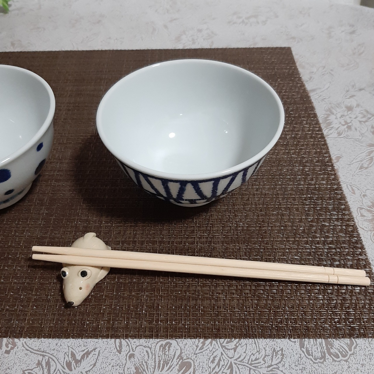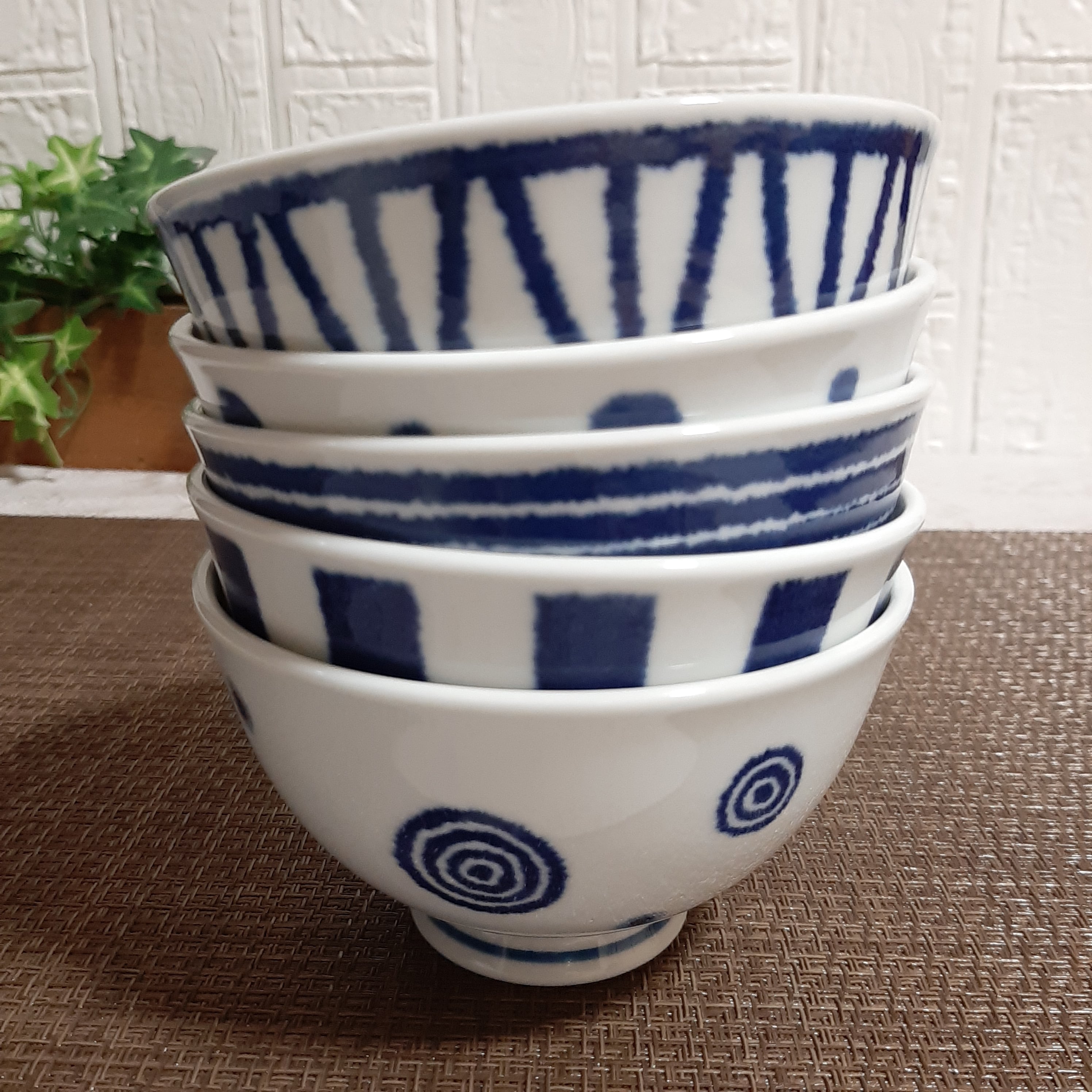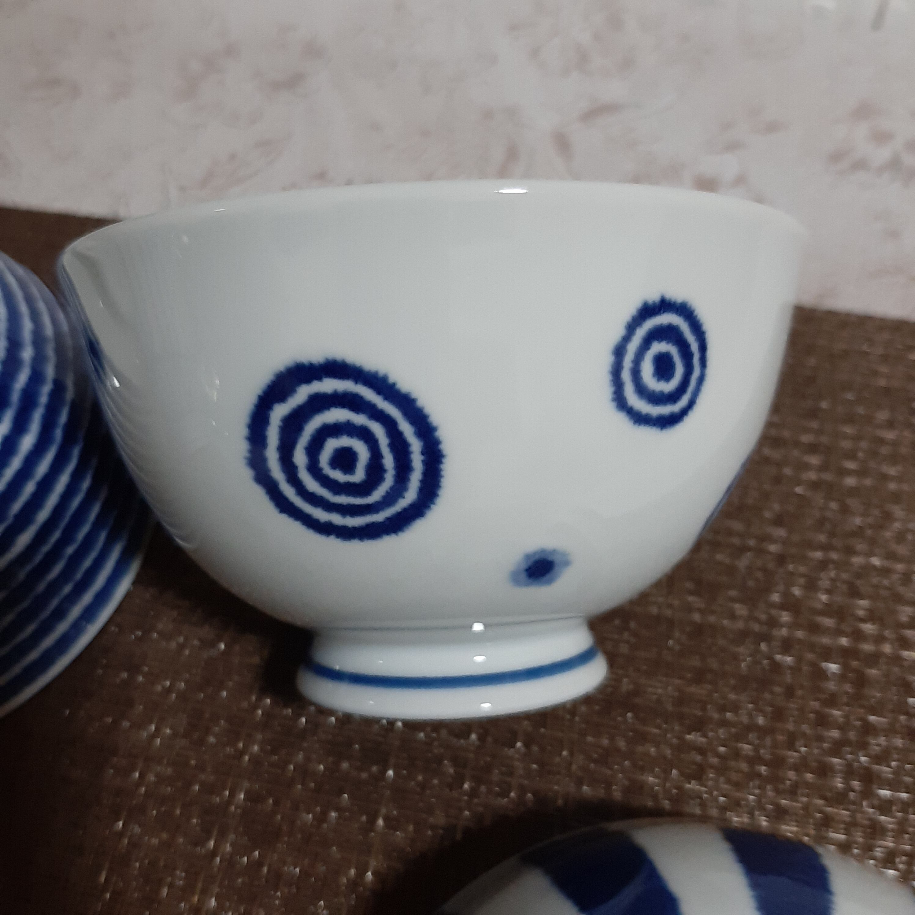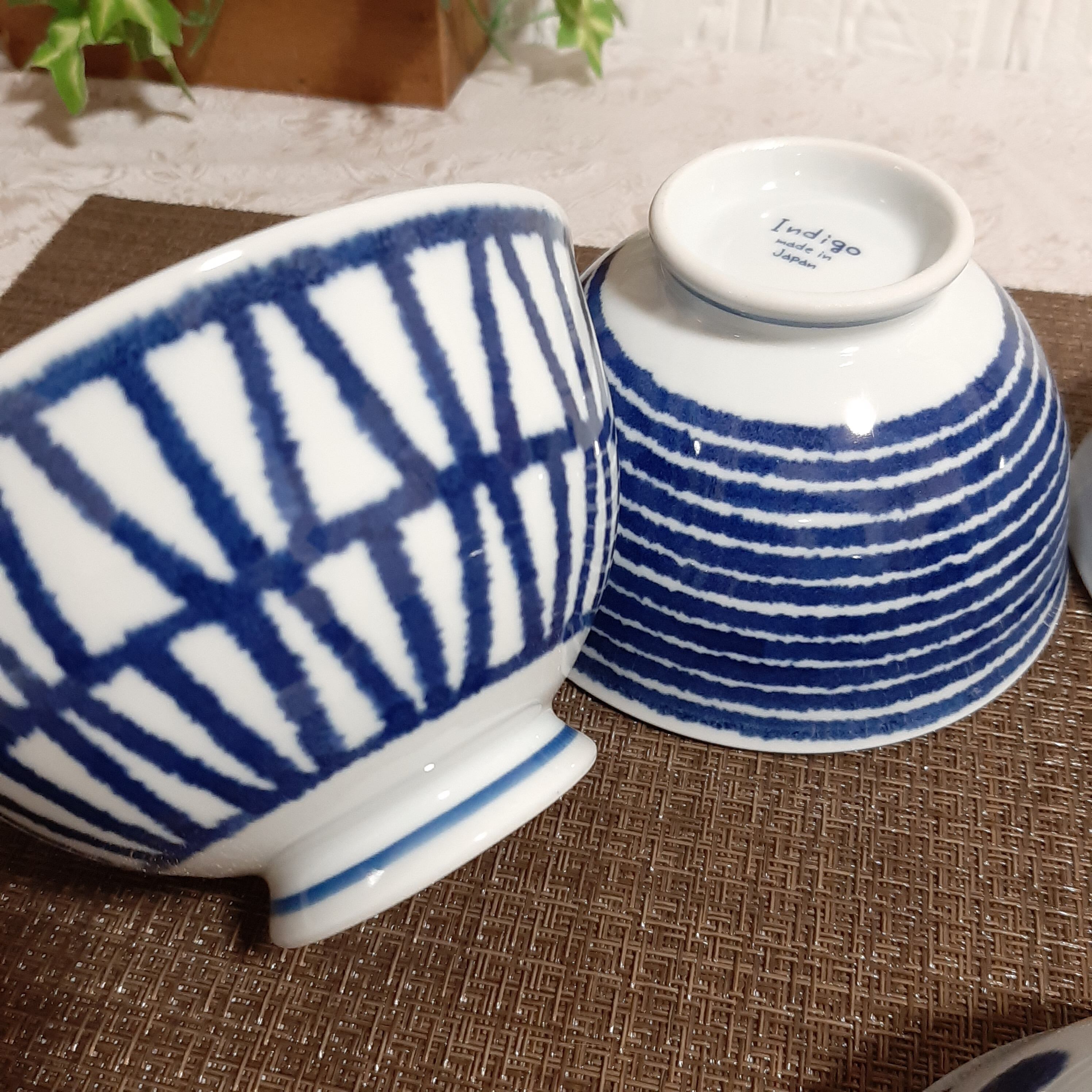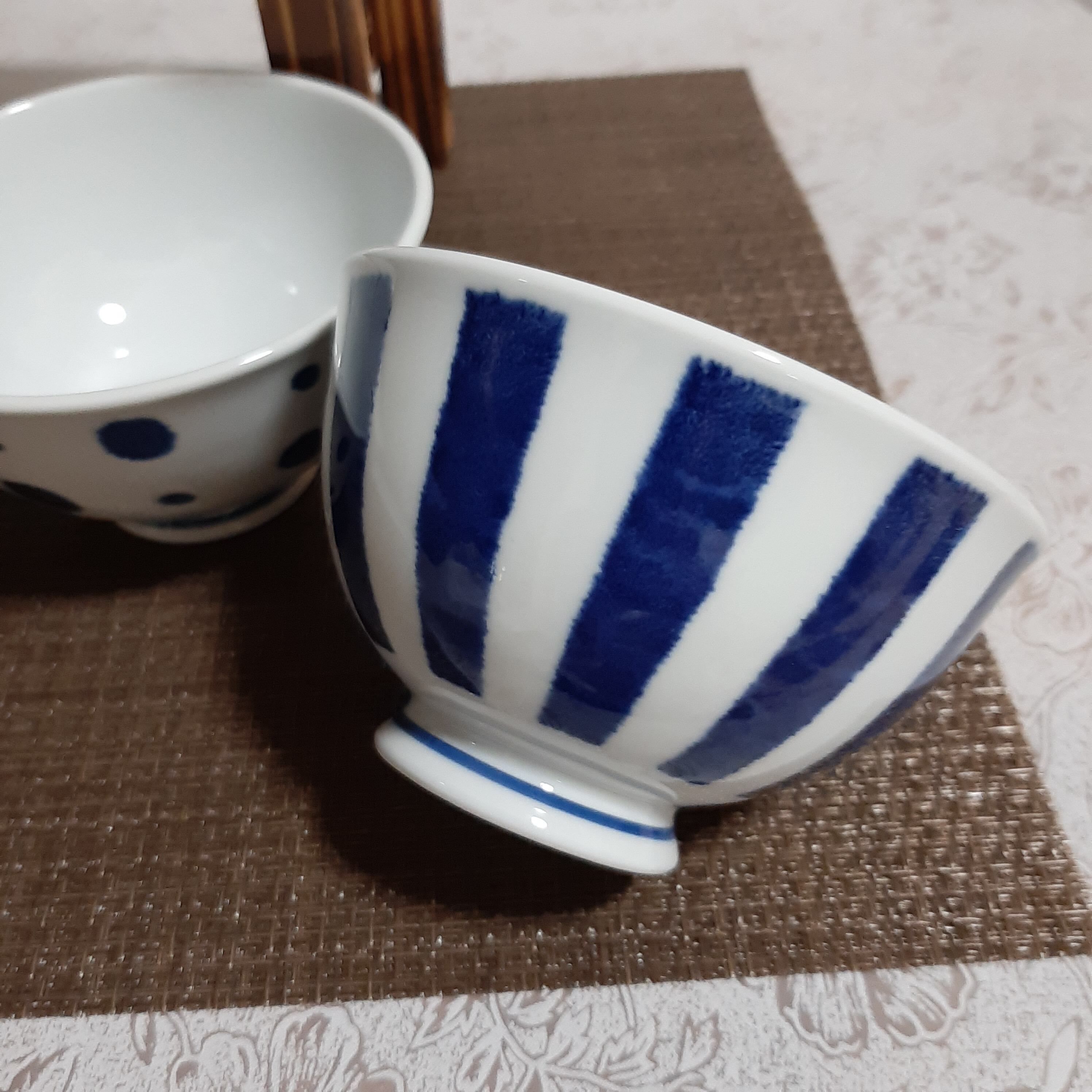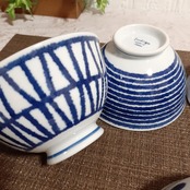 白 と 藍色 のコントラストが 綺麗 な ご飯 茶碗 です。