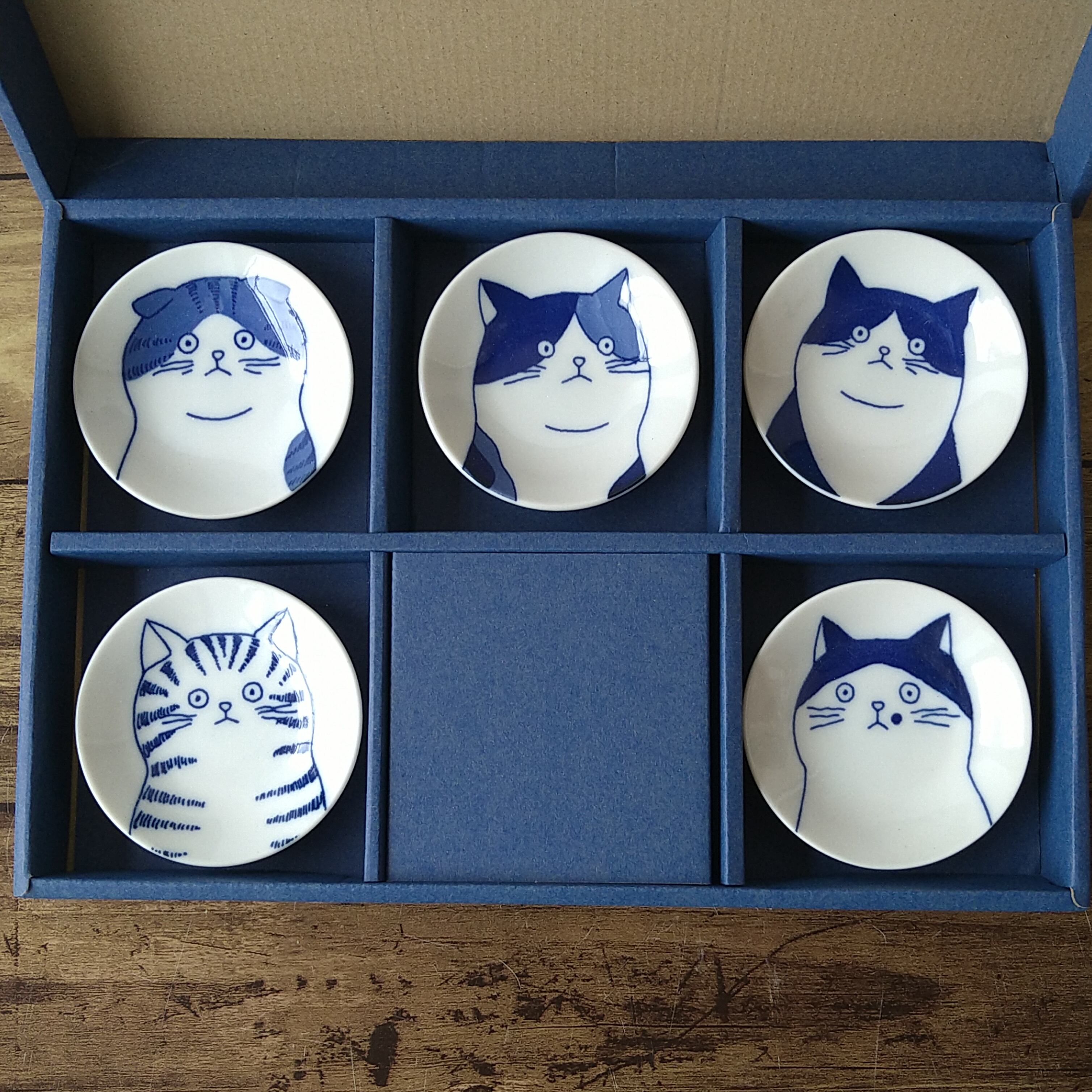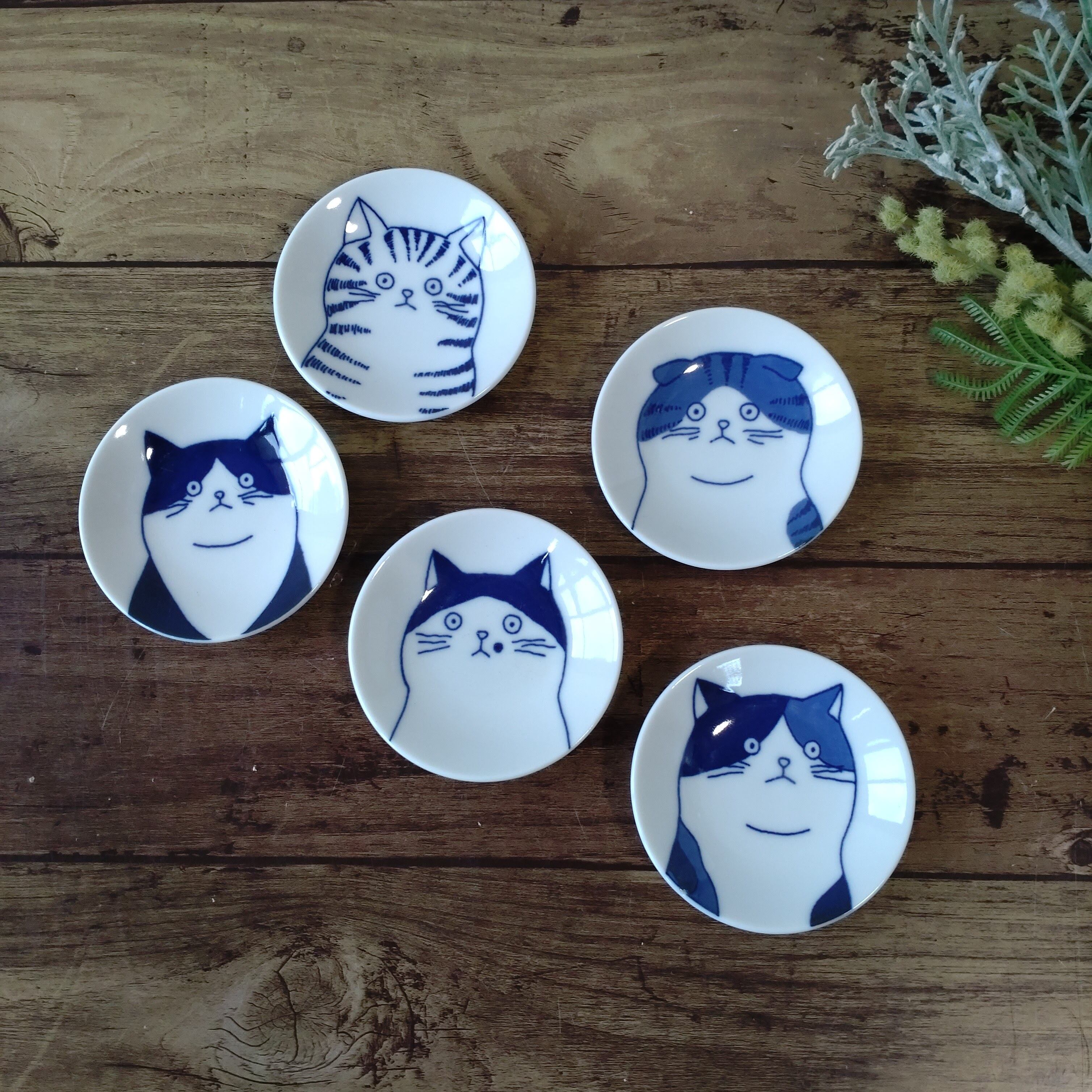 愛らしい 5匹の 猫 ちゃん柄の 豆皿 です☆